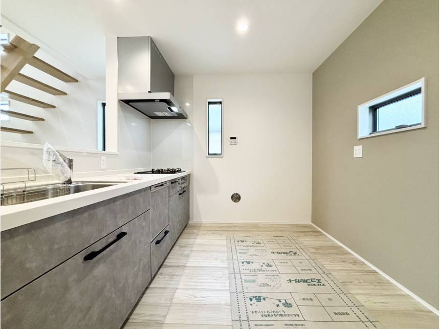 キッチンから全体を見渡せるので、料理をしながらの会話も弾みます。2階は広めの居室としっかりした収納を備え、ライフスタイルに合わせてアレンジが可能です。