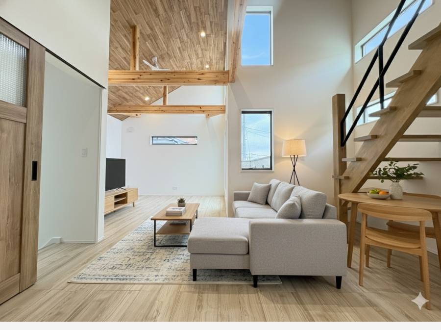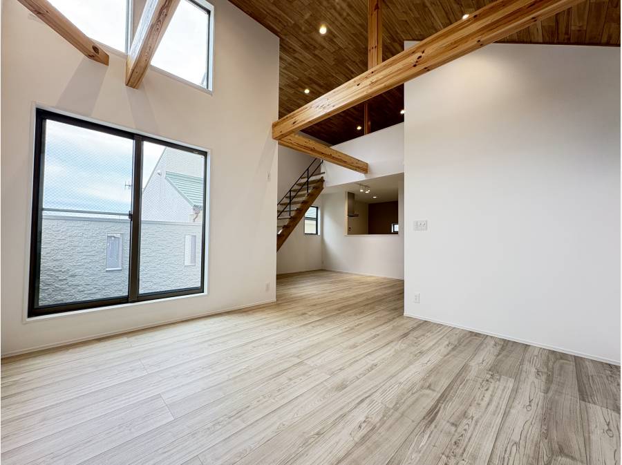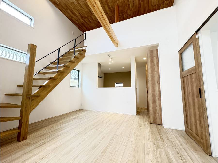 開放的な約21.2帖のLDK、空間を豊かに見せる勾配天井や、収納に便利なロフトなど、こだわりが詰まった設計になってます。