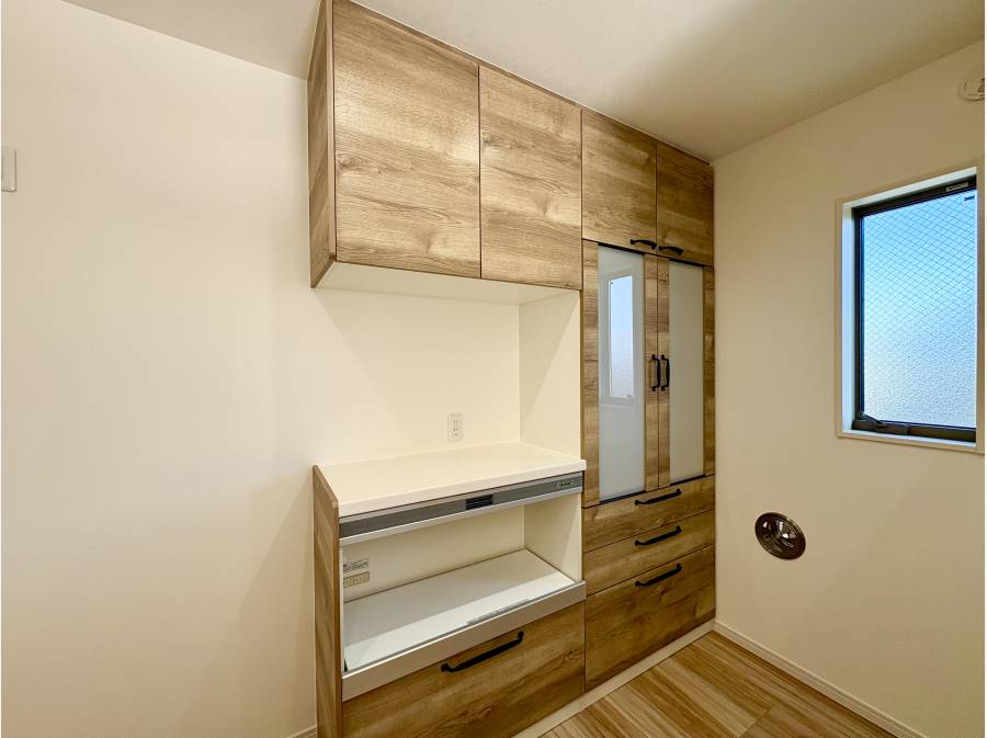 17.6帖の広々としたLDKが家族の中心。たっぷりと差し込む陽の光と心地よい風が、家族の集う時間を優しく彩ります。大きな窓が開放感をもたらし、明るい日中から静かな夜まで快適に過ごせる空間です。