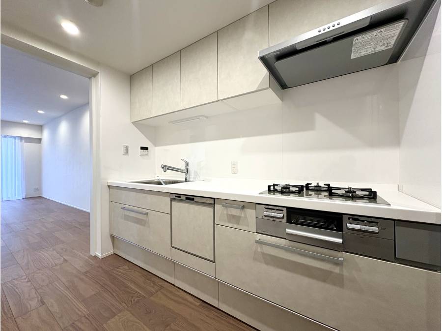 食洗機付きのシステムキッチンや大型の洗面化粧台など、水回り設備も一新されています。