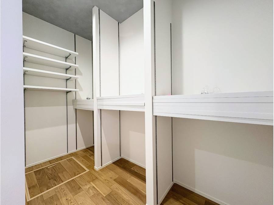 キッチン奥の大型パントリーが、食料品や日用品のストックに大活躍します。