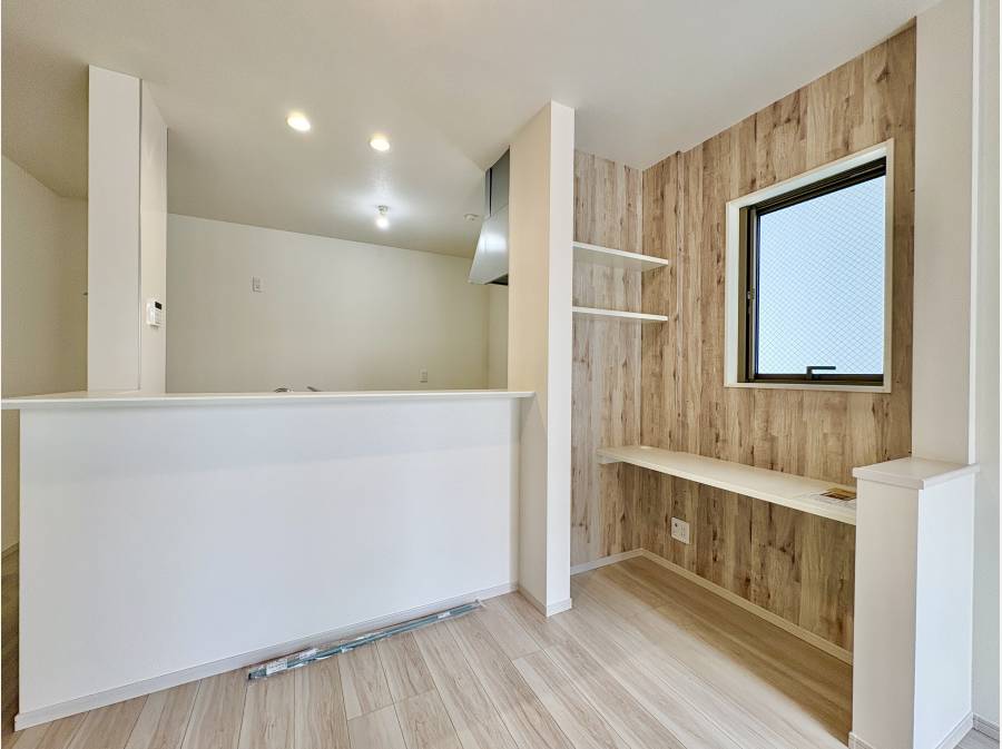 また、収納や作り付けのデスクなど、細部にわたるビルダー様の工夫が感じられる造りとなっています。