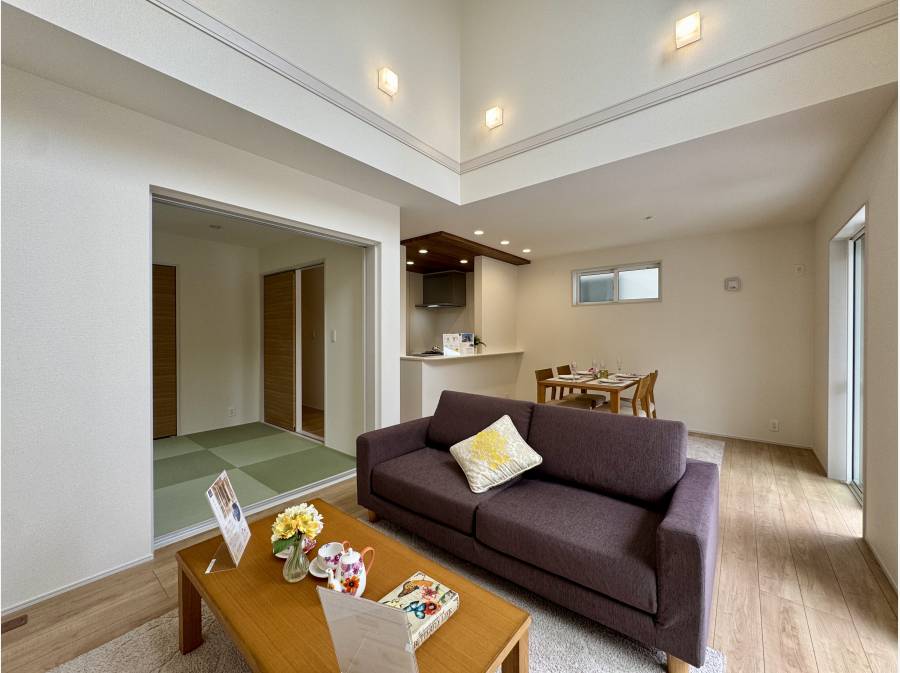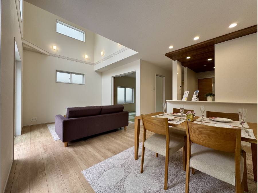 18帖以上の広々としたLDKには、空へと抜けるような吹抜を採用し、光と風が心地よく通り抜けます。