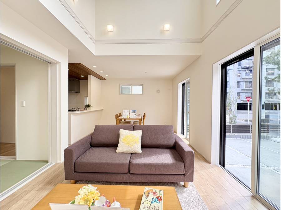 LDKは吹き抜け部分からも陽が差し込み、家族時間を温かく包んでくれます