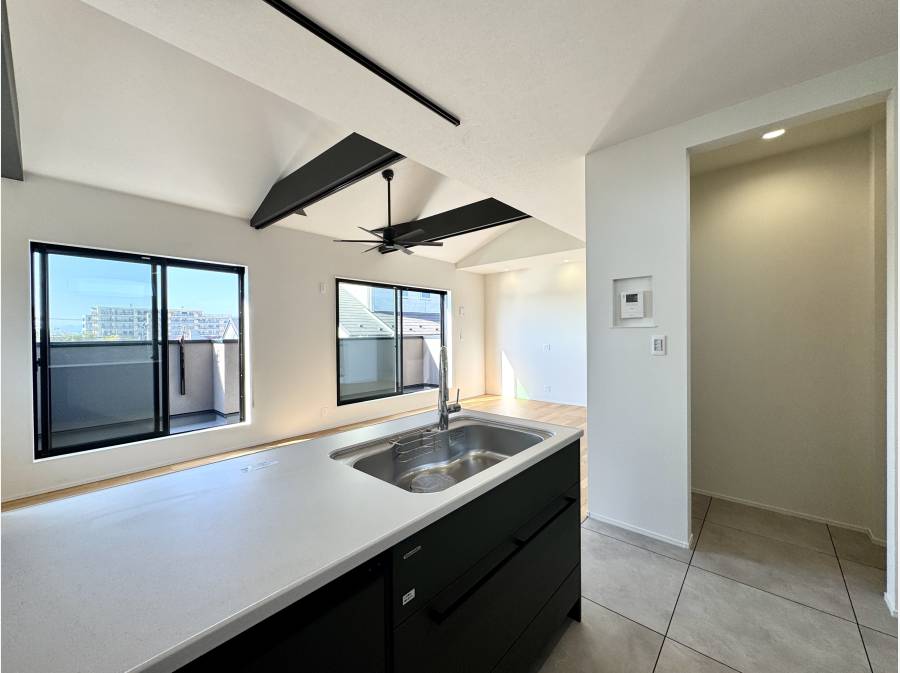 隣地の宅地が下がっているためリビングからの開放感に優れます