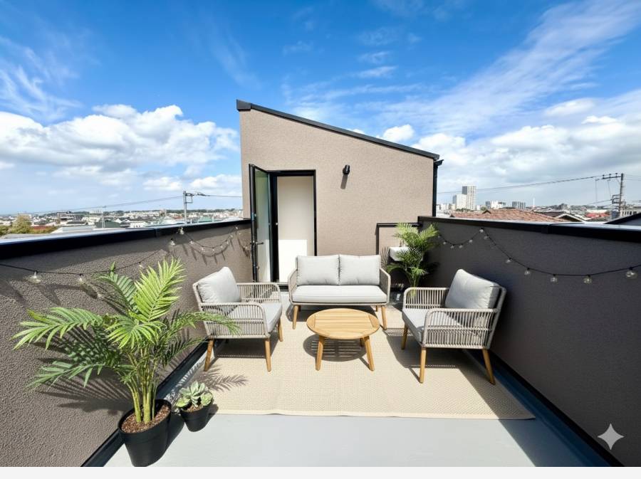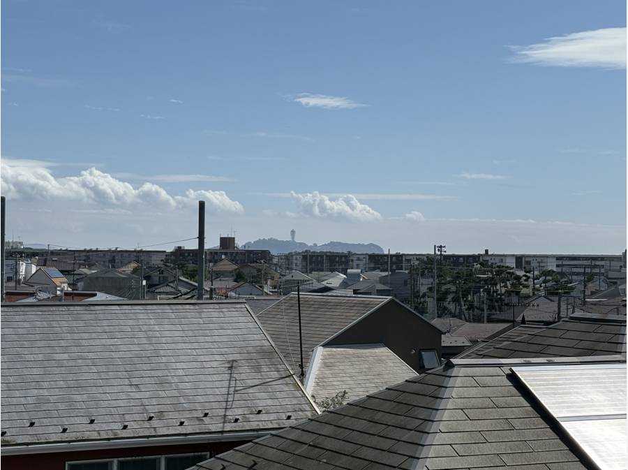 屋上のプライベートテラスが湘南の空と江ノ島が望め、家族でも一人でも癒しの空間が広がります。