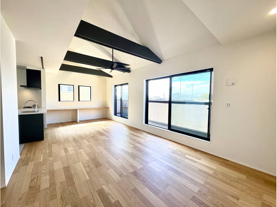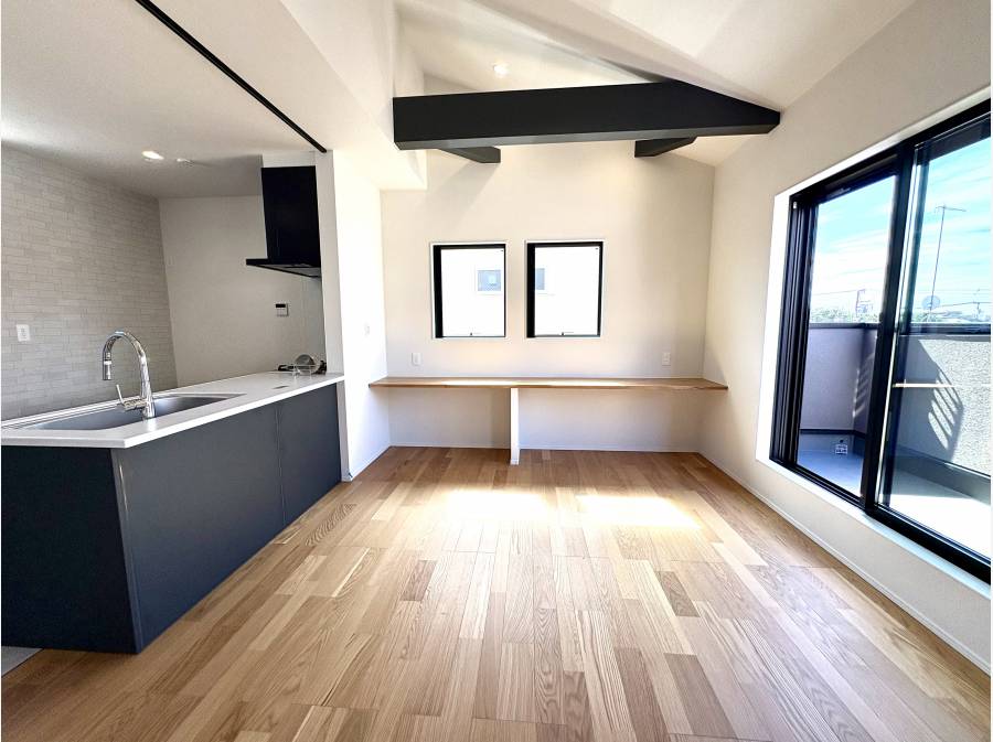 南西向きの大きい窓からは陽当たりもよく、キッチン横には広めのカウンターも備えてるため、お子様の勉強机、テレワークとしてご利用いただけます。