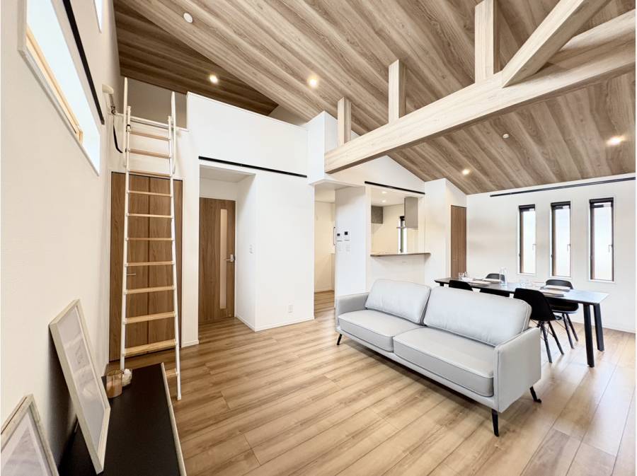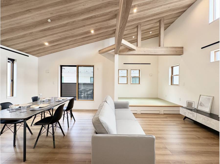勾配天井が生む開放感の中、家族の笑顔あふれる時間を♪