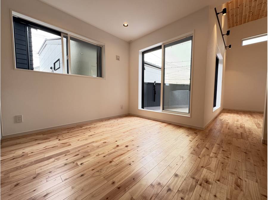 こちらの物件は注文住宅のような仕様になっており、床は西南桜というすこしほんのりピンクがかった色合いの無垢材を使用。