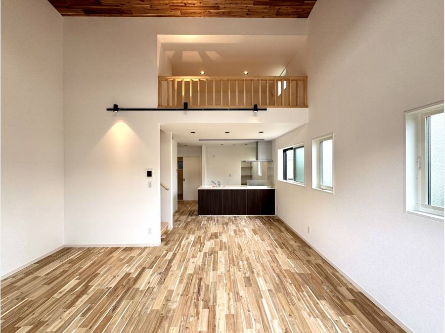 迫力ある吹き抜けのリビング 質感の良さが際立ちます