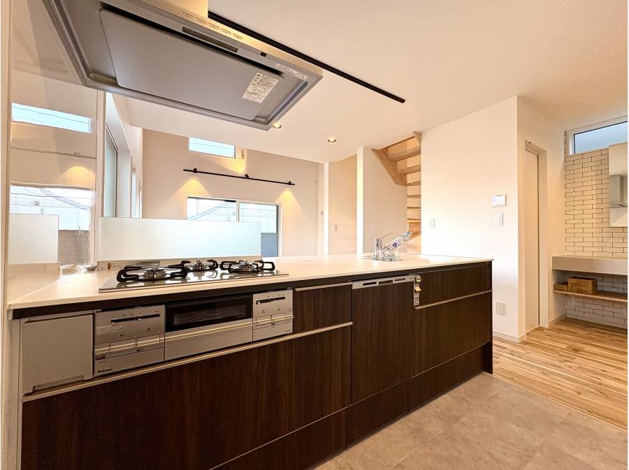 キッチンは、ダイニング側に全面収納を備えた人気の対面式。
