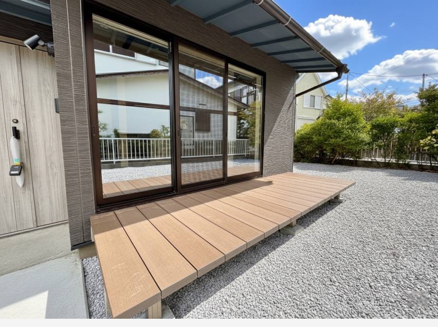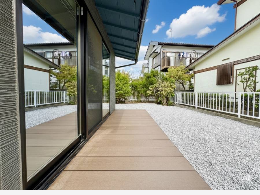 新たに設けられたウッドデッキが、暮らしにさらなる広がりをもたらします。