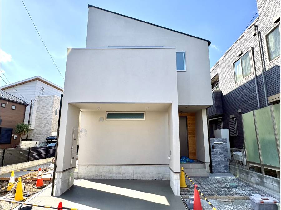 「辻堂」駅徒歩14分、車2台、外シャワー完備。23.1帖の勾配天井LDK。ZEH水準の邸宅