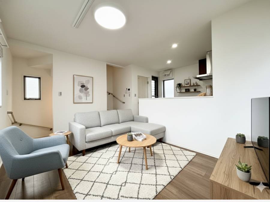 茅ヶ崎市浜之郷に誕生した新築一戸建て。すっきりとした外観に、自然光が差し込む明るいリビング。派手な装飾はないけれど、毎日の暮らしを心地よく支える工夫が随所にあります。