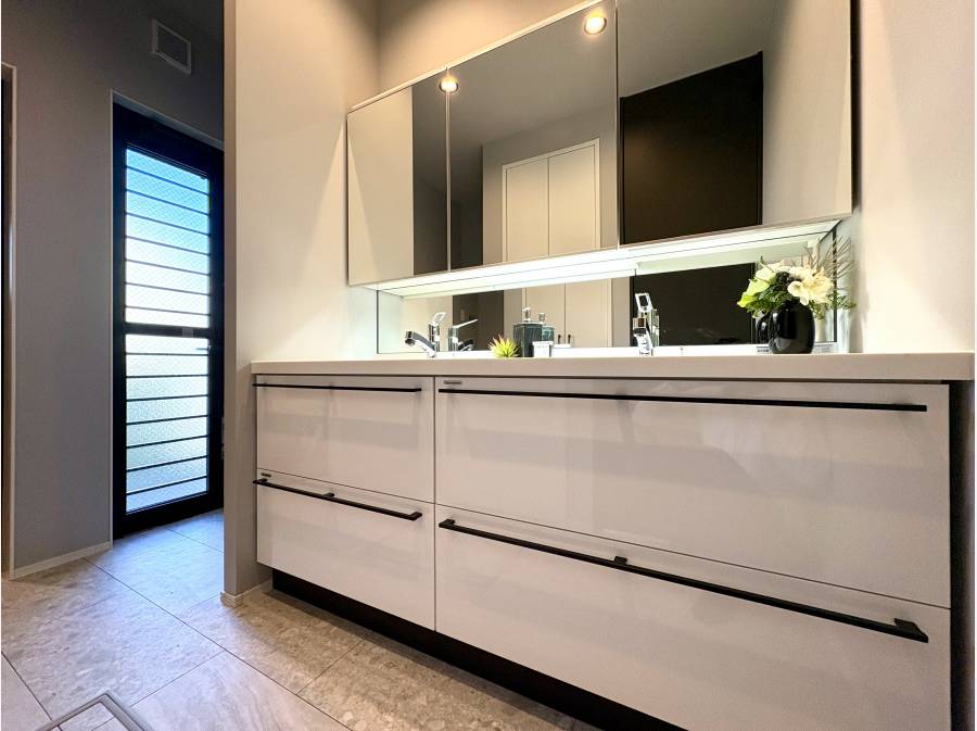 朝の身支度に便利なダブルボウルの洗面台や、サーフィン帰りに重宝する外シャワーなど、注文住宅仕様な設備が、日々の暮らしを快適かつ豊かに彩ります。