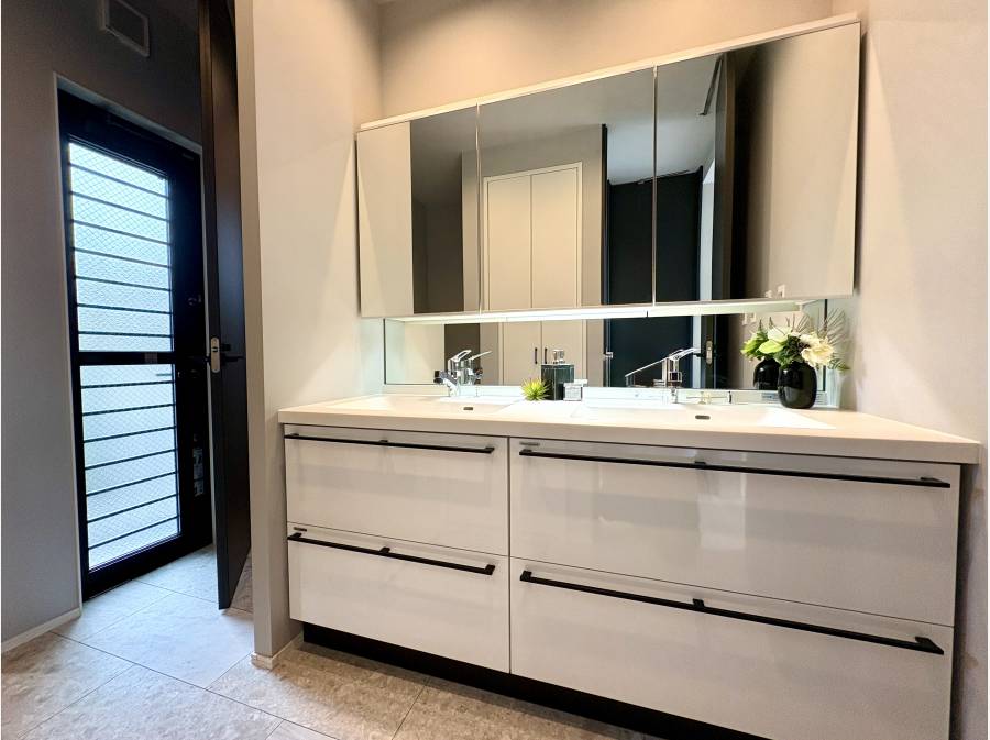 パントリーや回遊動線のファミリークローゼット、ツーボウル洗面、外シャワー、間接照明など、