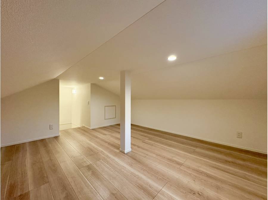 16.1帖の広々としたLDKに加え、固定階段で上がれるロフトスペースが便利です。このロフトは収納としても、趣味の空間としても活用できます。