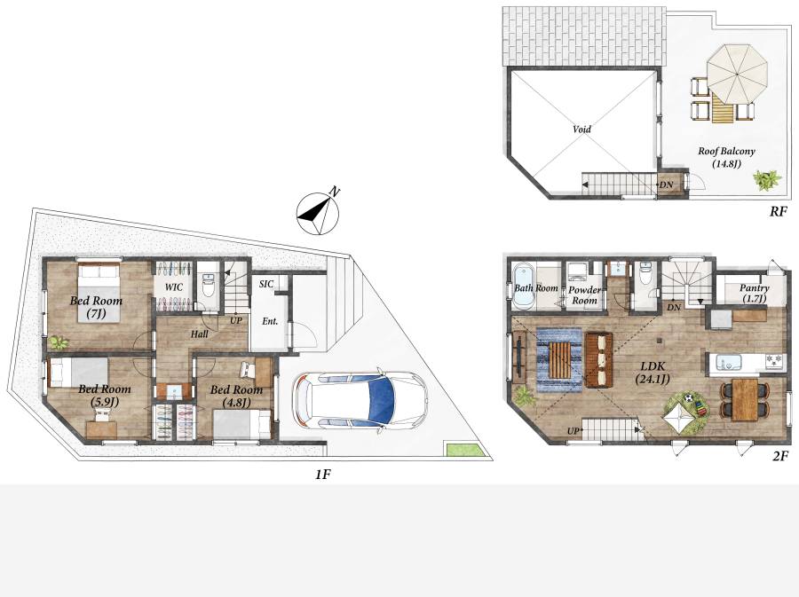 勾配天井LDKは約24.1帖!大型スカイバルコニー!