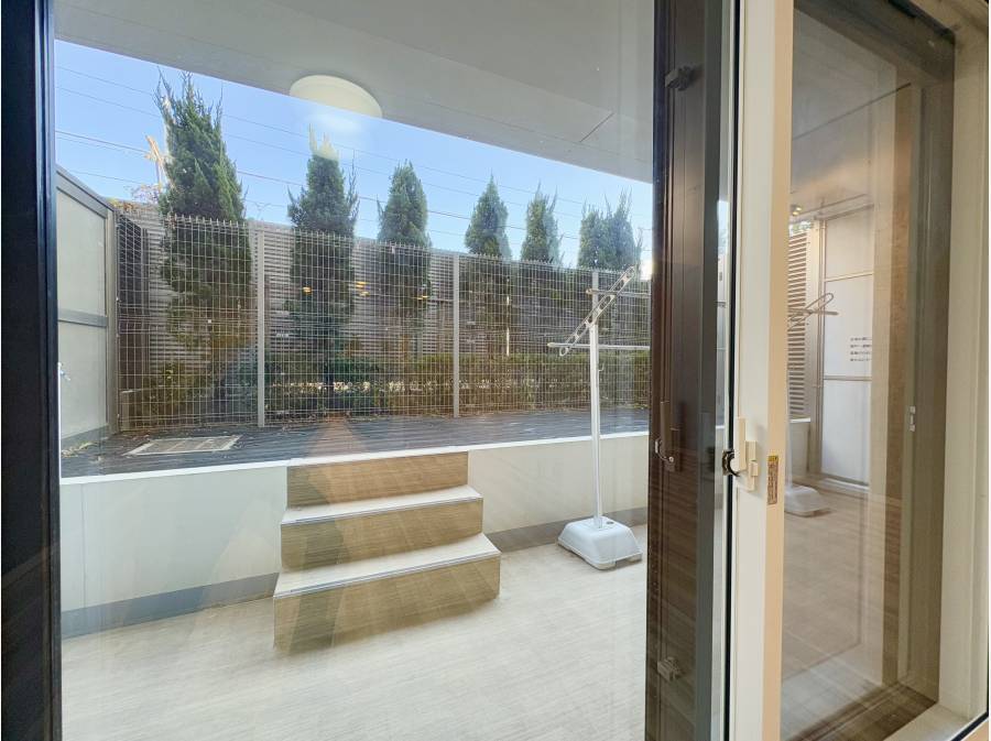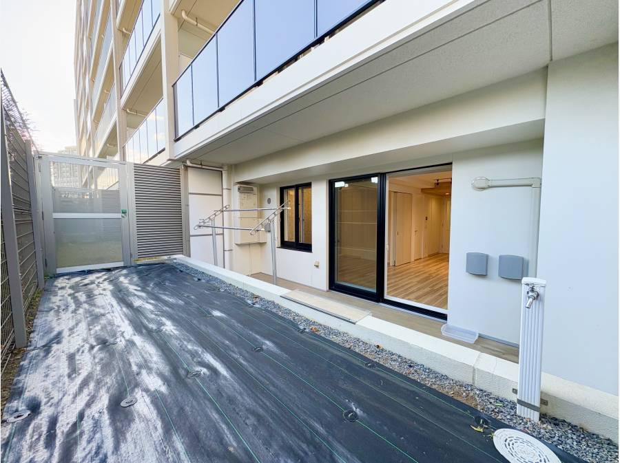この物件の魅力は、1階住戸ならではの開放感あふれる専用庭とテラスです。12㎡超のプライベートガーデンでは、ガーデニングを楽しんだり、お子様の夏のプール遊びに活用したり、戸建て感覚の贅沢な時間を過ごせます。