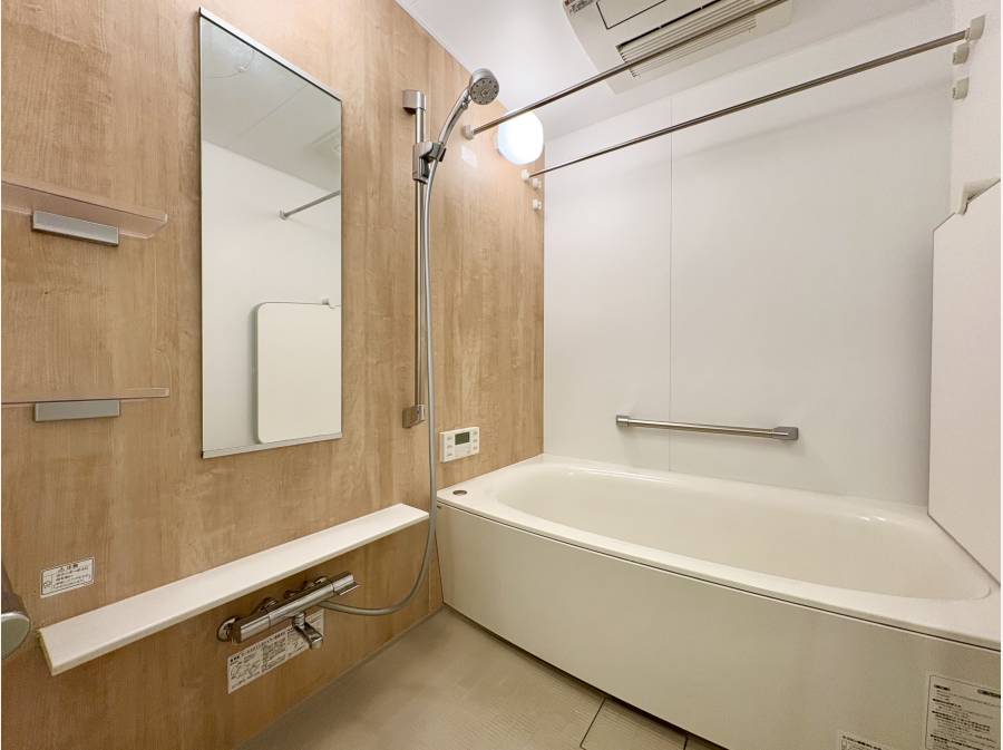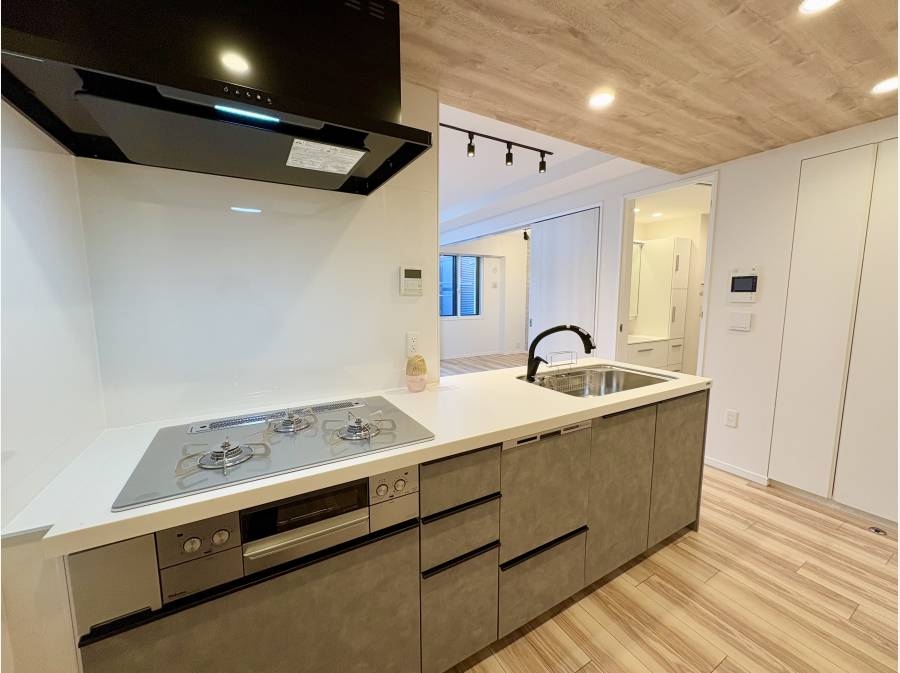室内はリノベーション済みで、食洗機付きキッチンや浴室乾燥機といった設備が整い、毎日の暮らしを快適にサポート。
