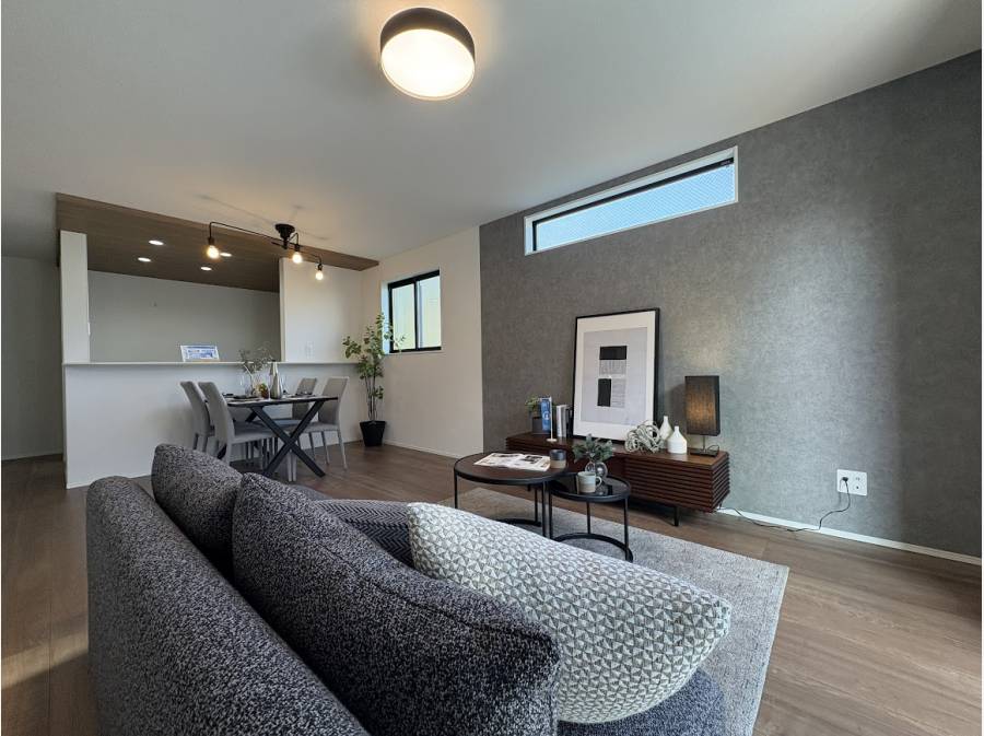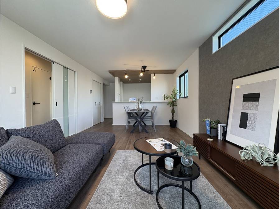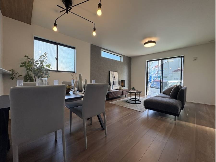 陽光溢れる暮らし: 南側道路に接しているため、日当たりは抜群。明るいリビングが家族の時間を彩ります。