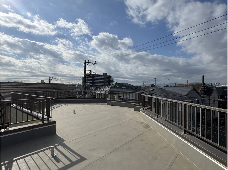 どーんと大きなルーフバルコニーからは、空気の澄んだ日に雄大な富士山を遠望できます。