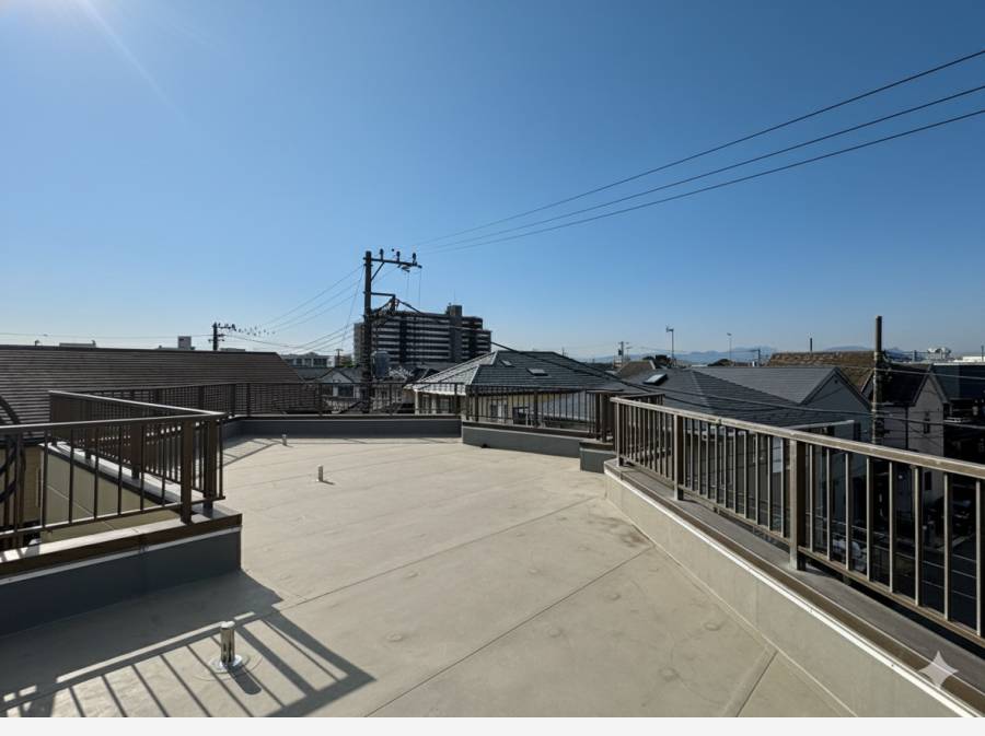 ルーフトップリビングのある暮らし。ゆったり4LDKのRC造。角地で開放感も陽当たりも良好。天気が良い日には富士山も望めます。