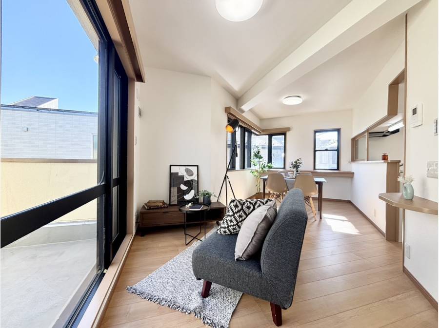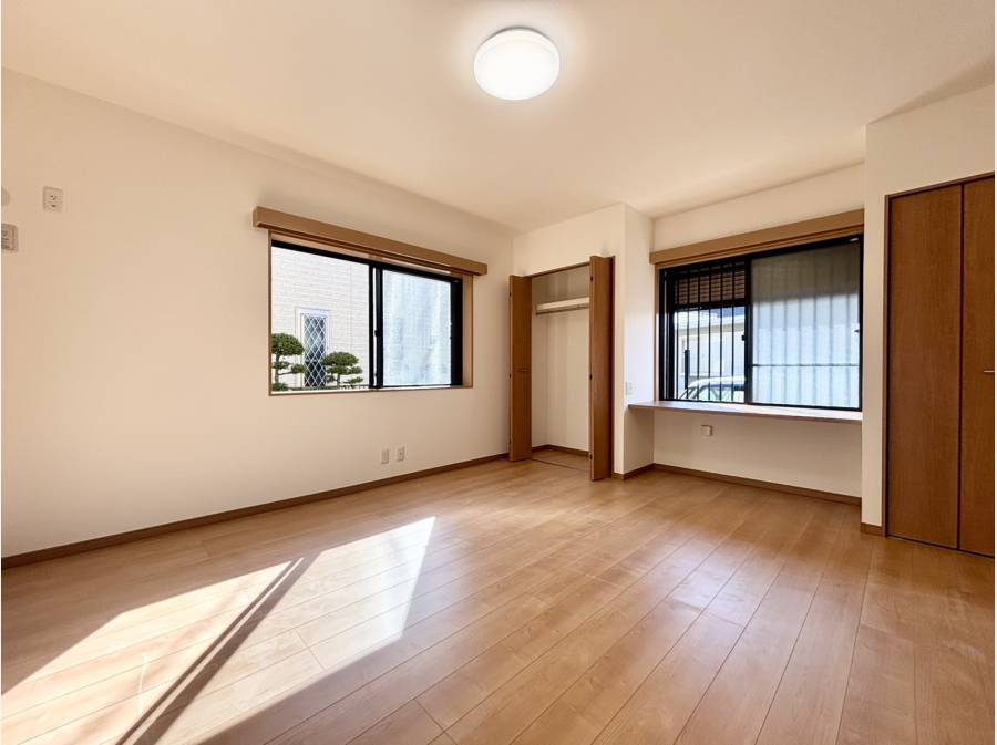 敷地面積約165㎡、建物面積約136㎡のゆとりある4LDKプラン。西・北側公道に面した角地につき、陽当たり・通風ともに良好です。室内は床材やクロス、キッチン・浴室・洗面・トイレなど水回り設備を一新し、温かみのあるナチュラルテイストに刷新。全居室収納付きで使い勝手にも配慮されています。