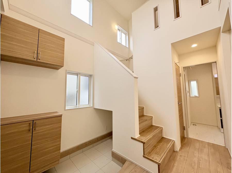 エントランス部分は吹き抜けが施され開放的な広々とした玄関が迎え入れてくれます。