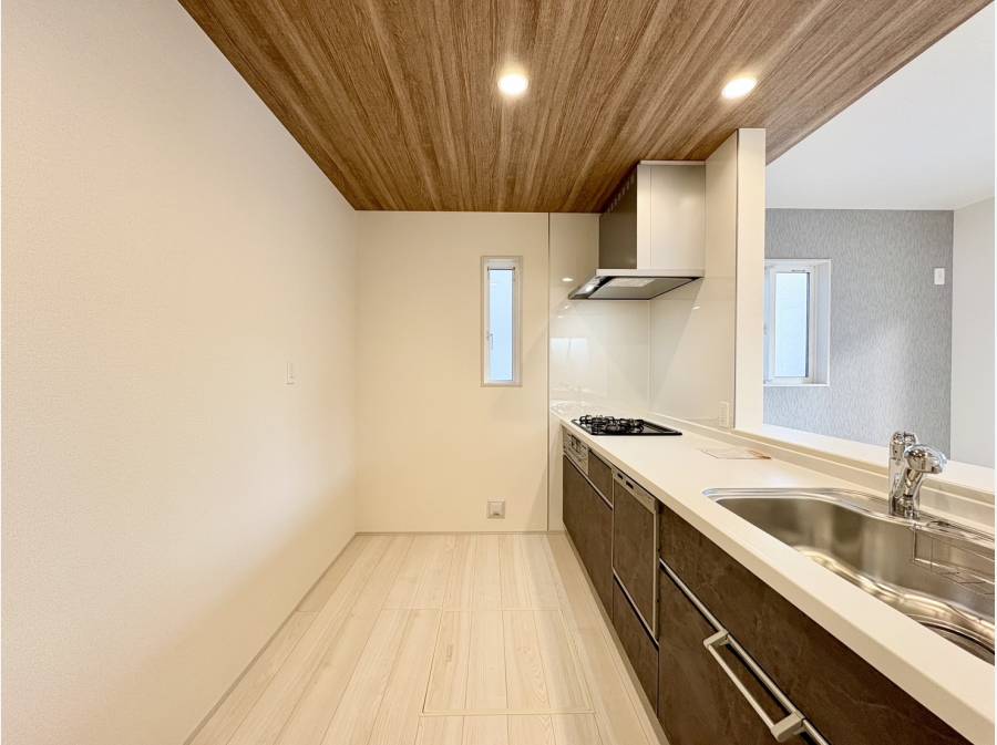 キッチンの天井も木のぬくもりを感じられるデザイン♪