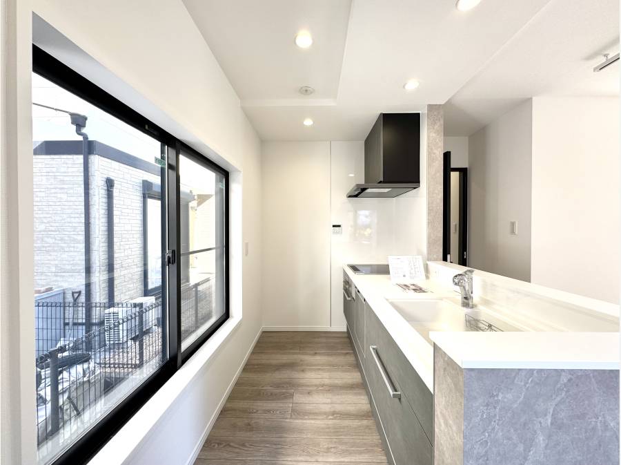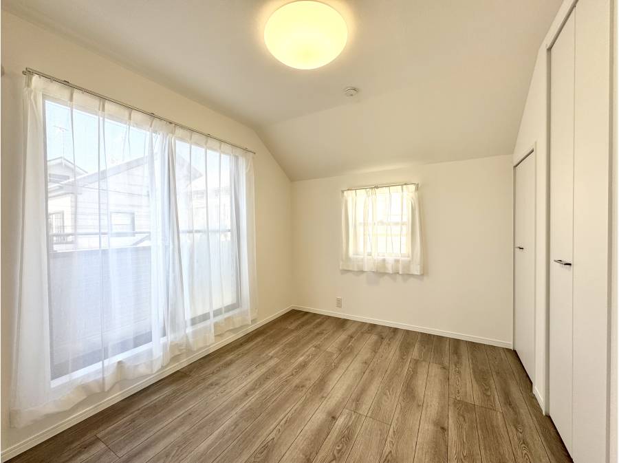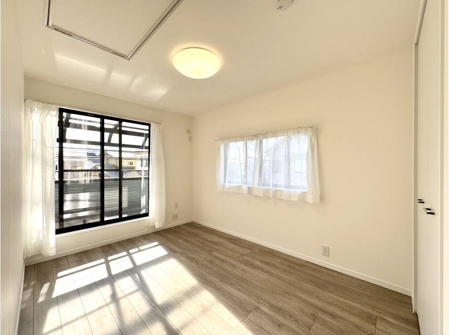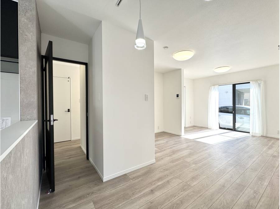 東西南の三方向がひらけた配置が生む、明るさと抜け感。窓から差し込む光が床をやさしく照らし、室内にいながら外の心地よさを感じられる住まいです。