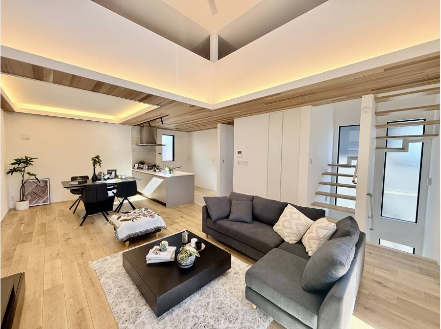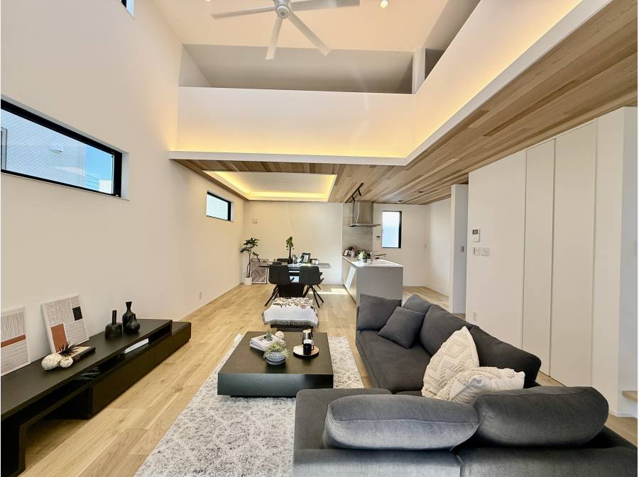 《吹抜けLDK×自然素材をふんだんに使用した心地よさ》