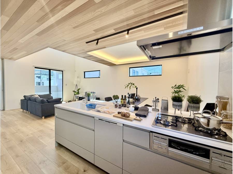 家族が集まるLDKは、光と高さを感じる開放的な空間。