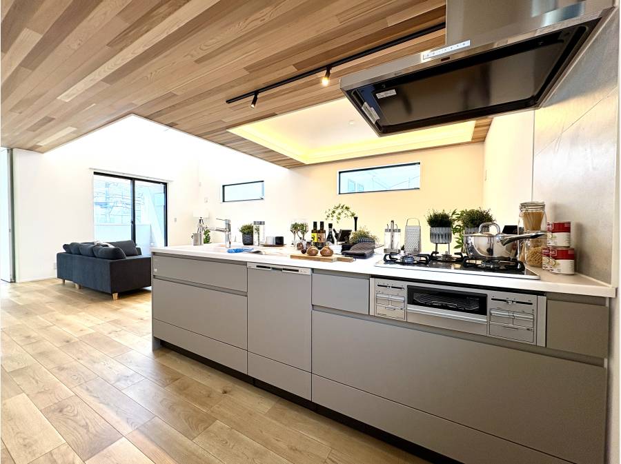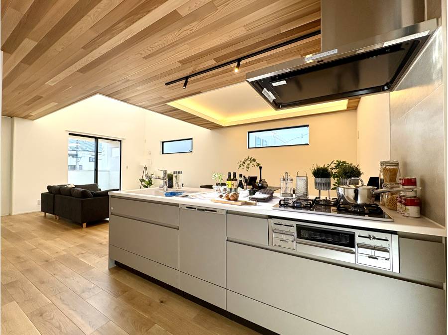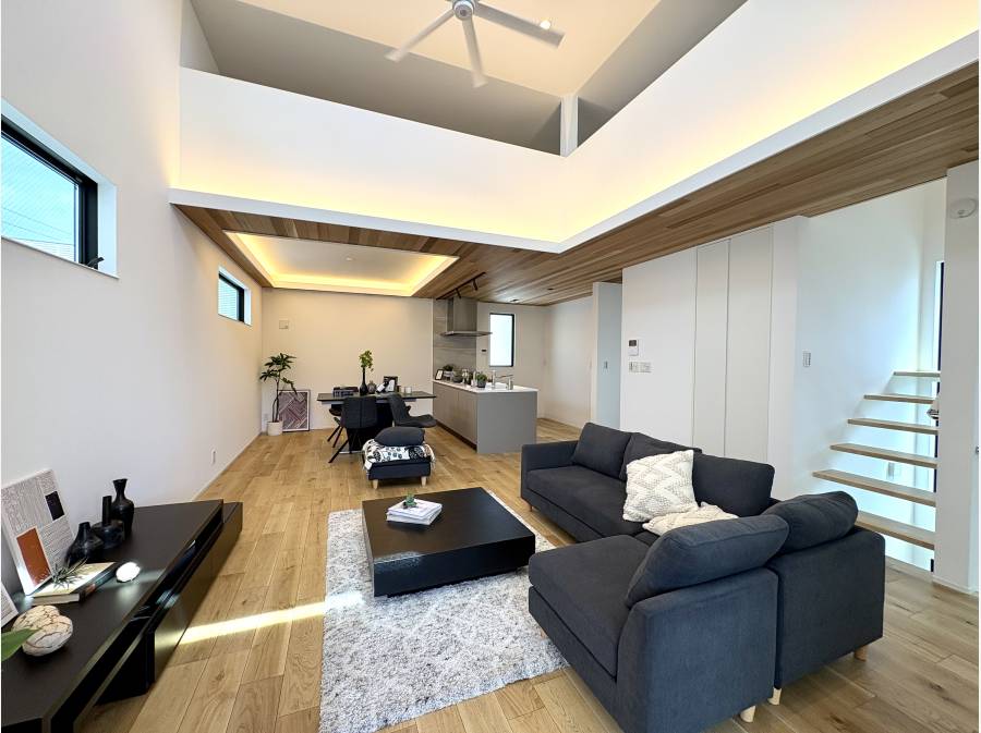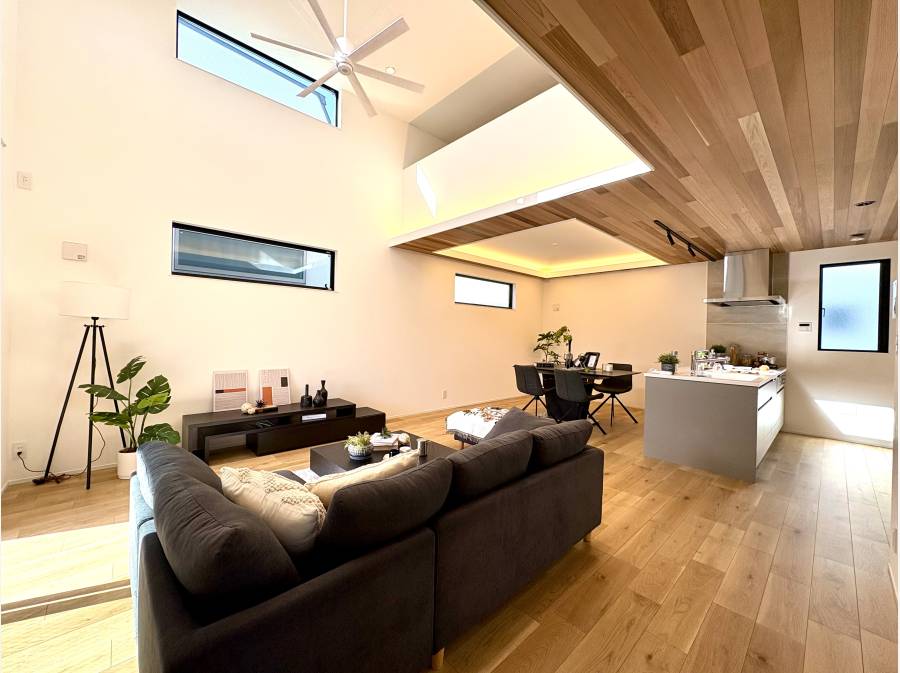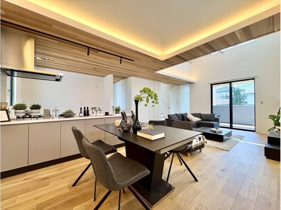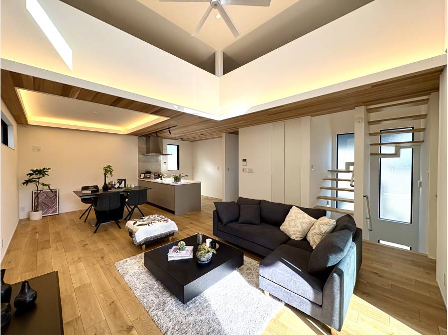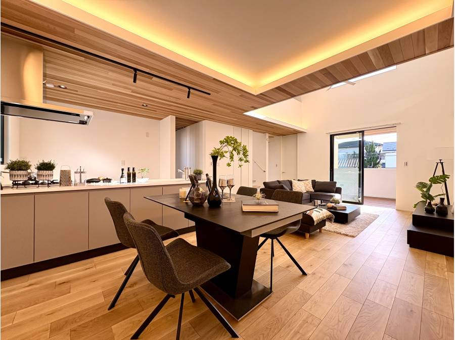 吹き抜けのある約22.5帖の広大なLDKには、住まいの中心となるペニンシュラキッチンを配し、家族の豊かな時間を演出します。