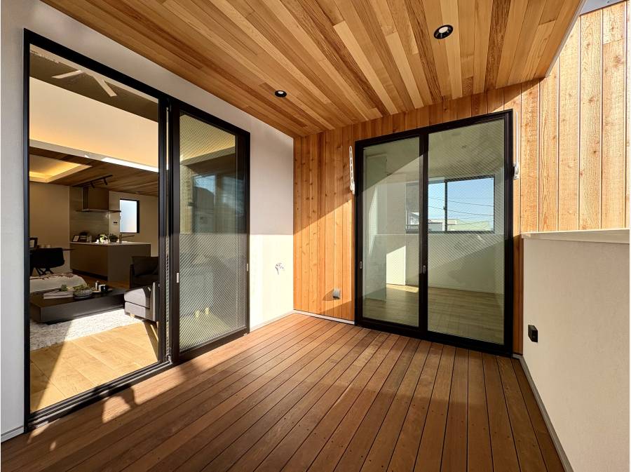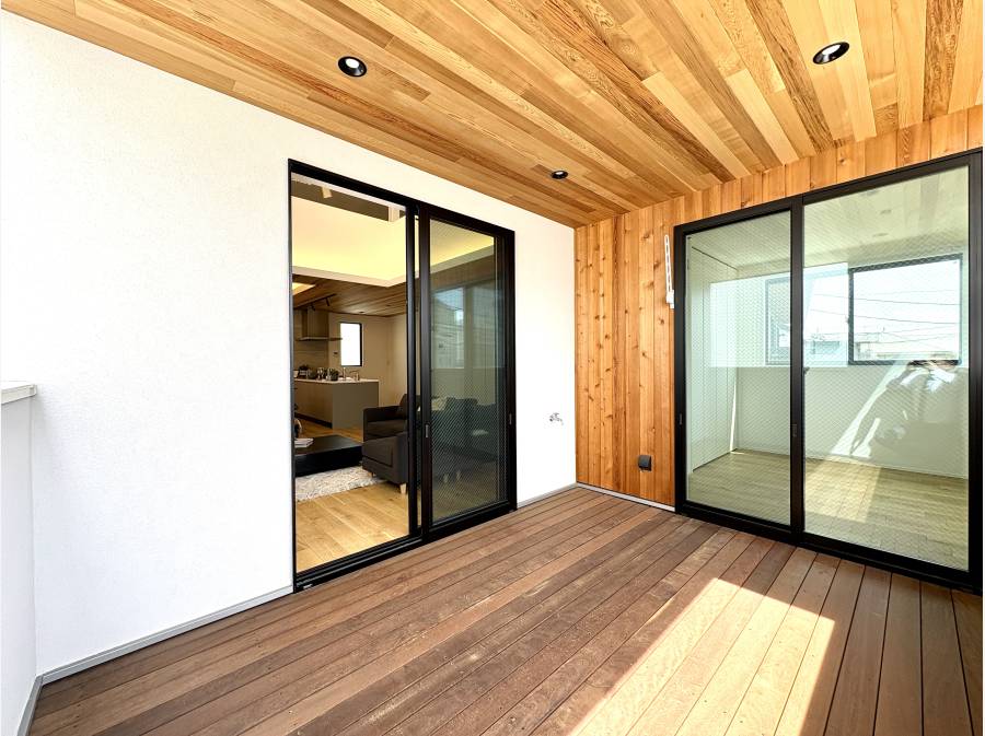 また、リビングとフラットに繋がるバルコニーも天然木仕上げとなっており、内と外が一体となった開放感を愉しめます。