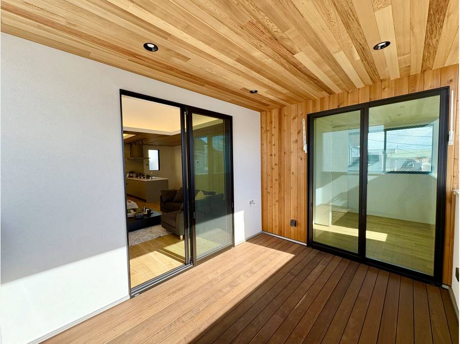 さらに、外壁やバルコニーにもオイル塗装を施した天然木を用いることで、細部に至るまで本物へのこだわりが感じられる仕上がりです。