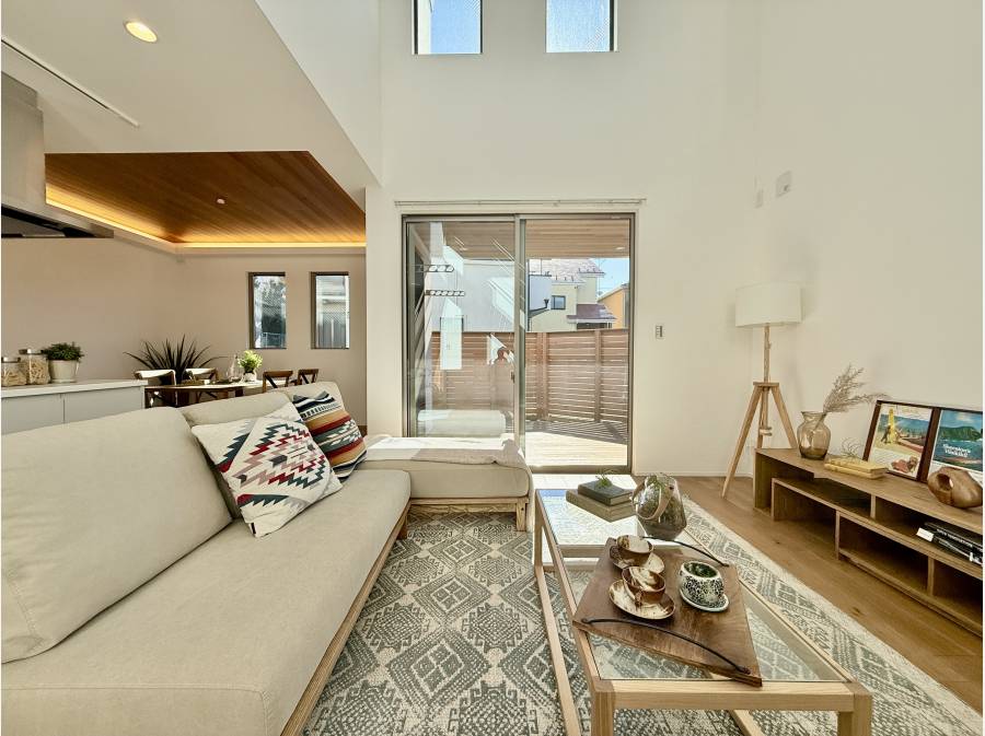 昼も夜も心地よく過ごせるリビングに仕上がっています。