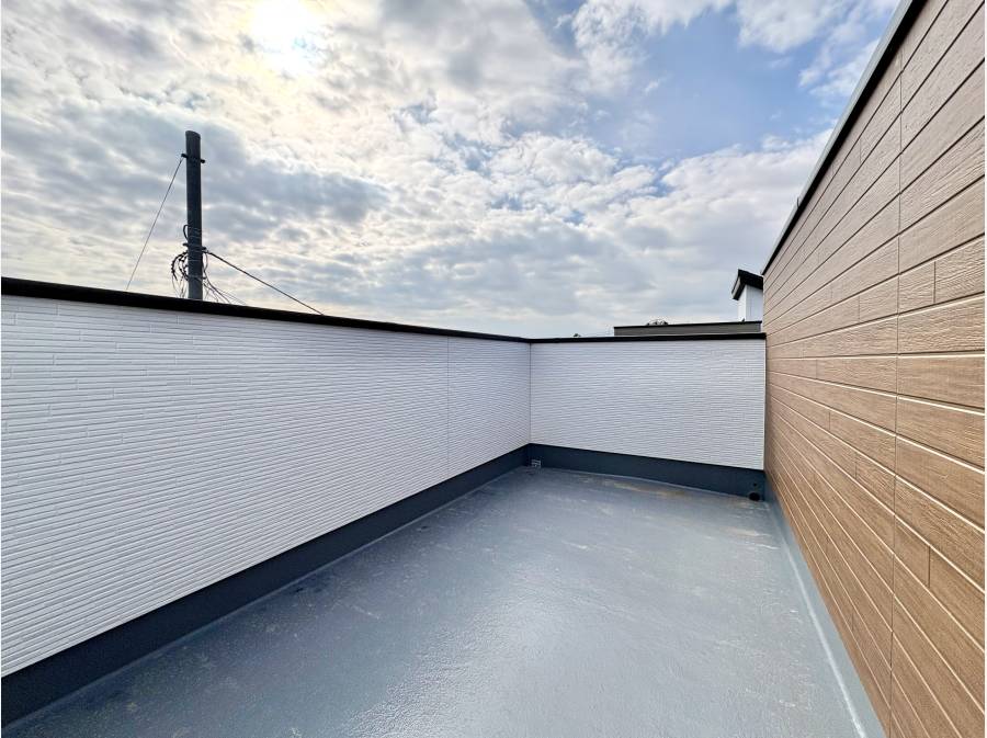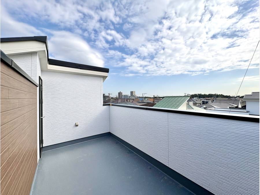 開放的なルーフバルコニーから湘南の空を仰ぐ。ゆとりあるLDKとZEH水準の安心に包まれた、浜須賀での新しい物語。
