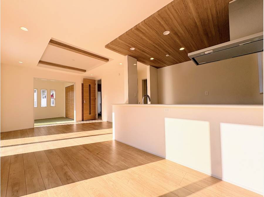 ◎陽だまりのような暖かさ 東南側が隣地のカースペースとなっているため、視界を遮るものがありません。たっぷりの陽光が降り注ぐリビングは、自然と家族が集まる温かい空間になります。