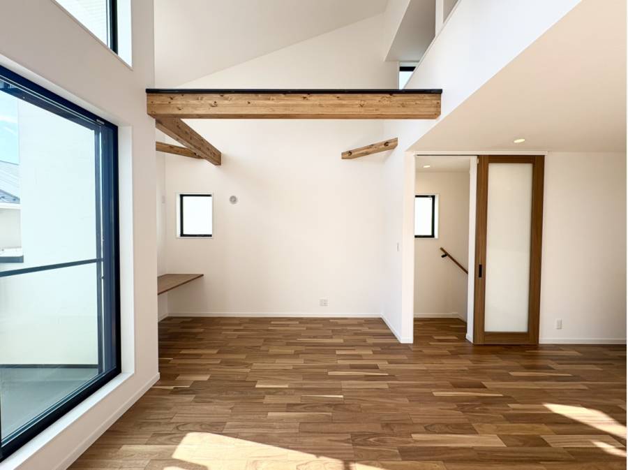 お洒落な塗壁や多目的カウンター、吹抜天井のLDKなどデザイン性と快適さを兼ね備えたお家でございます。