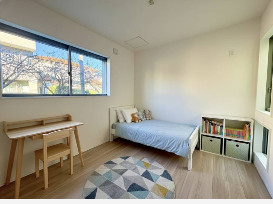 寝室の風通しも良く、爽やかな空気が暮らしを心地よく整えてくれる設計です。玄関横には大容量シューズインクロークを備え、ベビーカーやアウトドア用品の収納にも便利。固定階段でアクセスできるロフトは、趣味空間や収納として活躍します。
