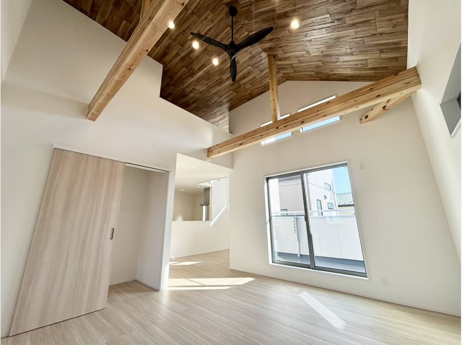 綿密に設計された勾配天井のLDK