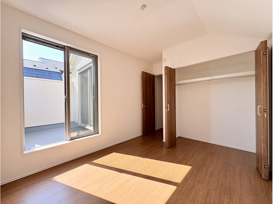 2階洋室は4部屋。南側に設けられたバルコニーは日当たりよく洗濯物に便利な広さです。また全室クローゼット付きの5帖以上の広さがありご家族のプライベートをしっかり確保できる間取りとなっています。