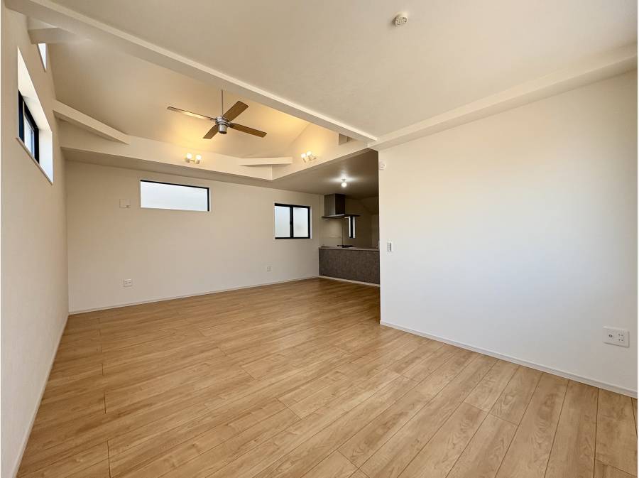 22帖超のLDKは開放感たっぷりで、シーリングファンが湘南らしい雰囲気を演出してくれます。