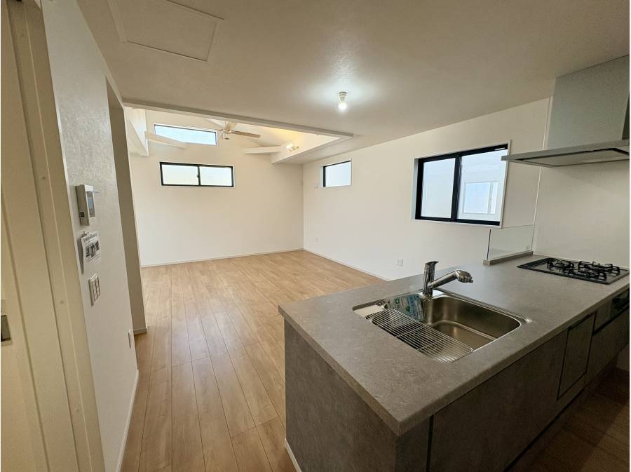 青空を満喫できるスカイバルコニーとシーリングファンが回る20帖超のLDKが魅力です。