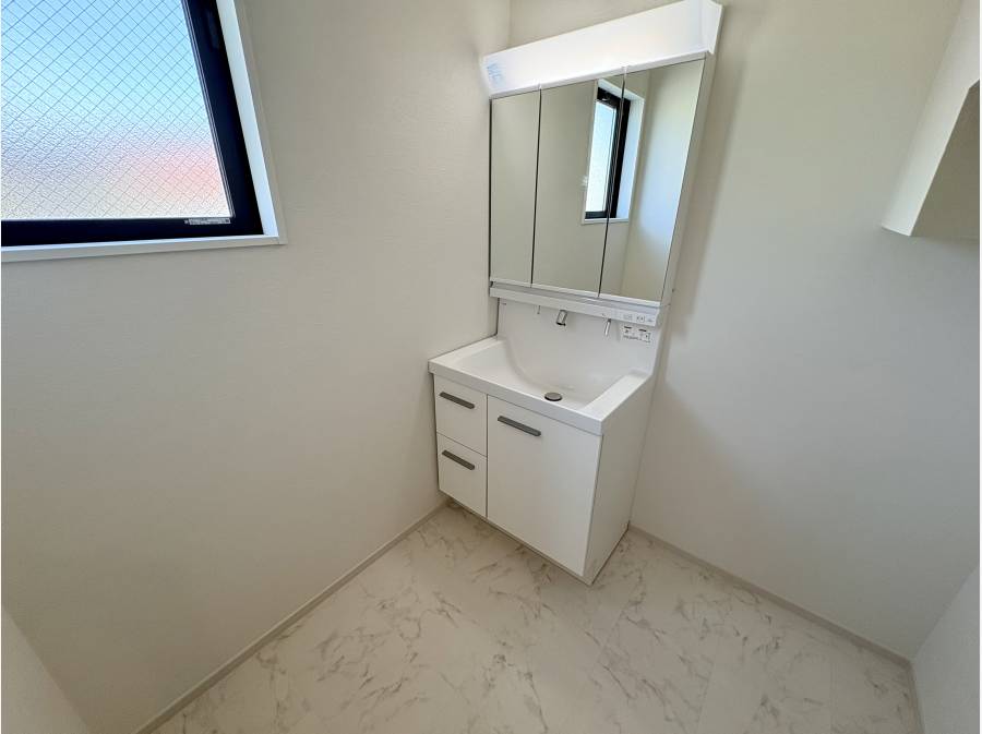 白を基調とした明るい玄関や、清潔感のある水周りなど、毎日の暮らしを心地よくする工夫が随所に詰まっています。