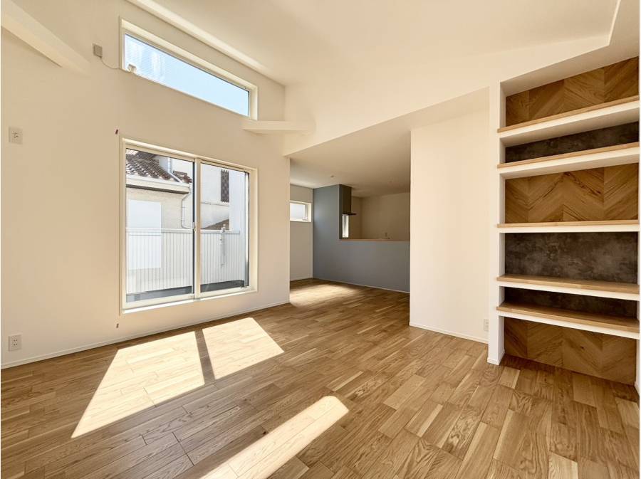 キッチンからリビング全体を見渡せる設計で、小さなお子様がいるご家庭でも安心。さらに各居室には収納がしっかり確保されており、住まいをすっきり保つことができます。
