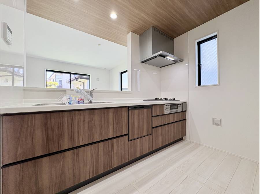 対面式のシステムキッチンには片付けもスムーズになる食洗機がついているのもポイントです。