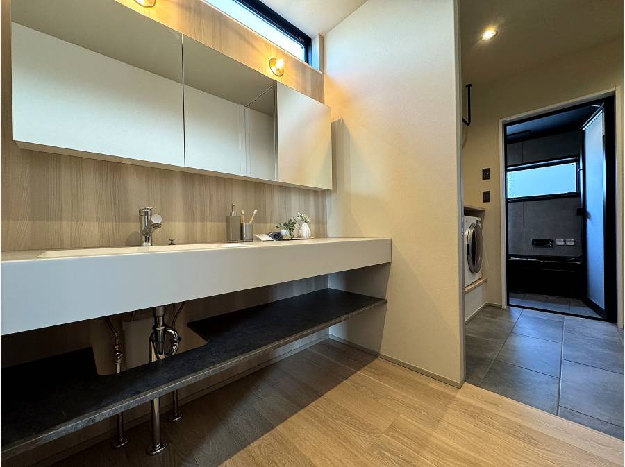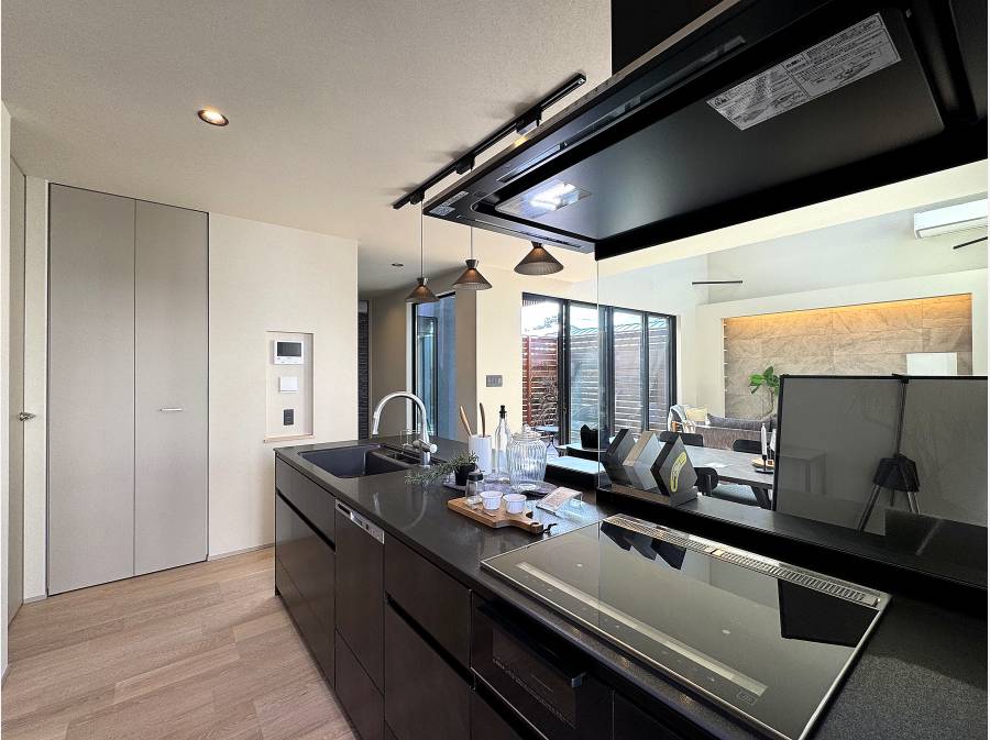 視線は抜け、天井は高く、心まで軽やかに解き放たれる開放感。キッチンからリビング、そして外へと緩やかにつながる動線は、日常にさりげない余裕をもたらしてくれそうですね。