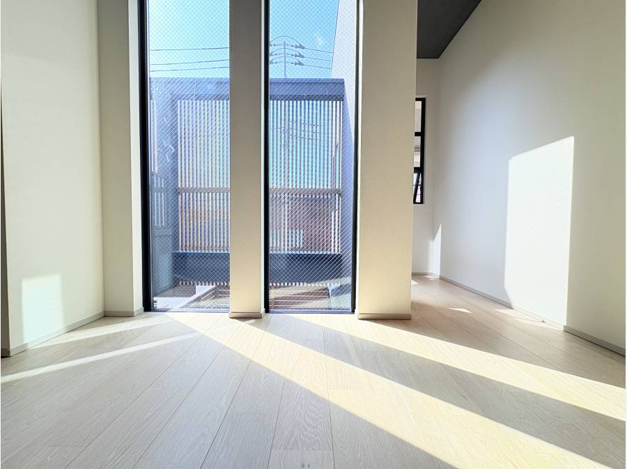 3面に配置された窓からは豊かな自然光が差し込み、室内を明るく包み込みます。